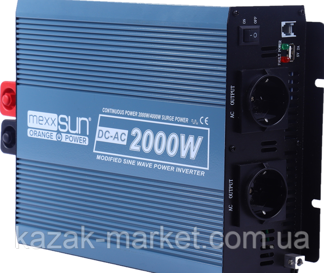 | Назва | Інвертор напруги апроксимована синусоїда 12 у 220 В 2000вт з двома розетками Mexxsun MXS-2000 домашній |