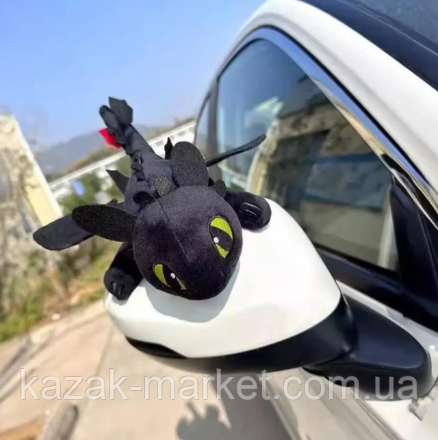 Іграшка на машину «Дракон Беззубик» 30 см, з кріпленням, чорний/ М'яка іграшка дракон