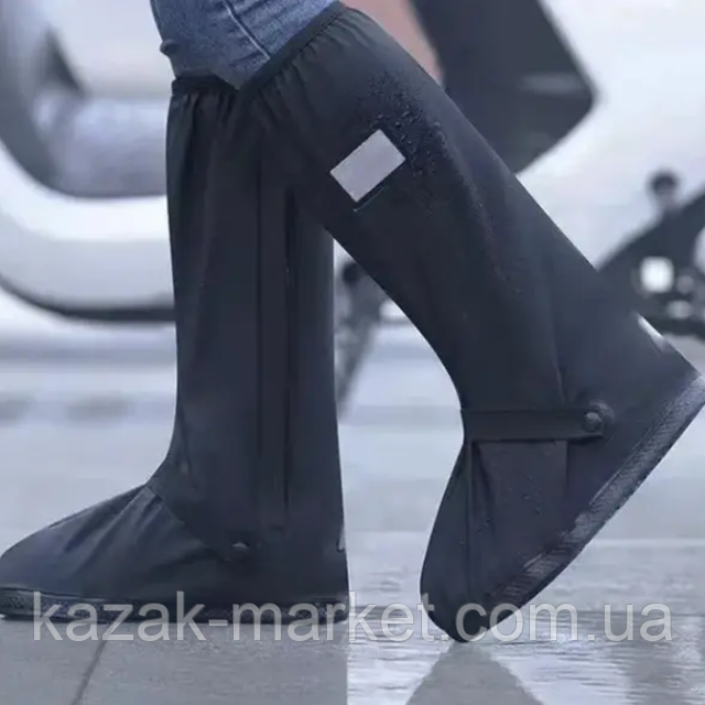 Бахіли для взуття L та XXL Високі бахіли силіконові на взуття від води Багаторазові силіконові бахіли